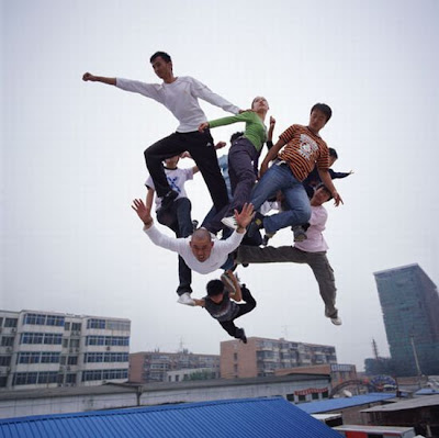 His work is a mixture of performance art and photography that creates illusions of a sometimes dangerous reality. Li Wei states that these images are not computer montages and works with the help of props such as mirror, metal wires, scaffolding and acrobatics.